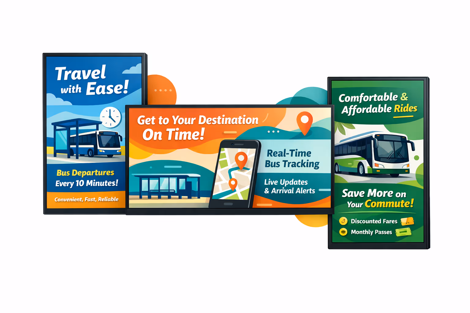 Bewerben Sie Einzelhandel, Partnerangebote und lokale Dienstleistungen nach Tageszeit, Publikum oder Zone. Digitale Beschilderung an Busbahnhöfen wandelt Wartezeiten in Wert um und liefert Mehrwert, während die Informationsinhalte priorisiert werden.