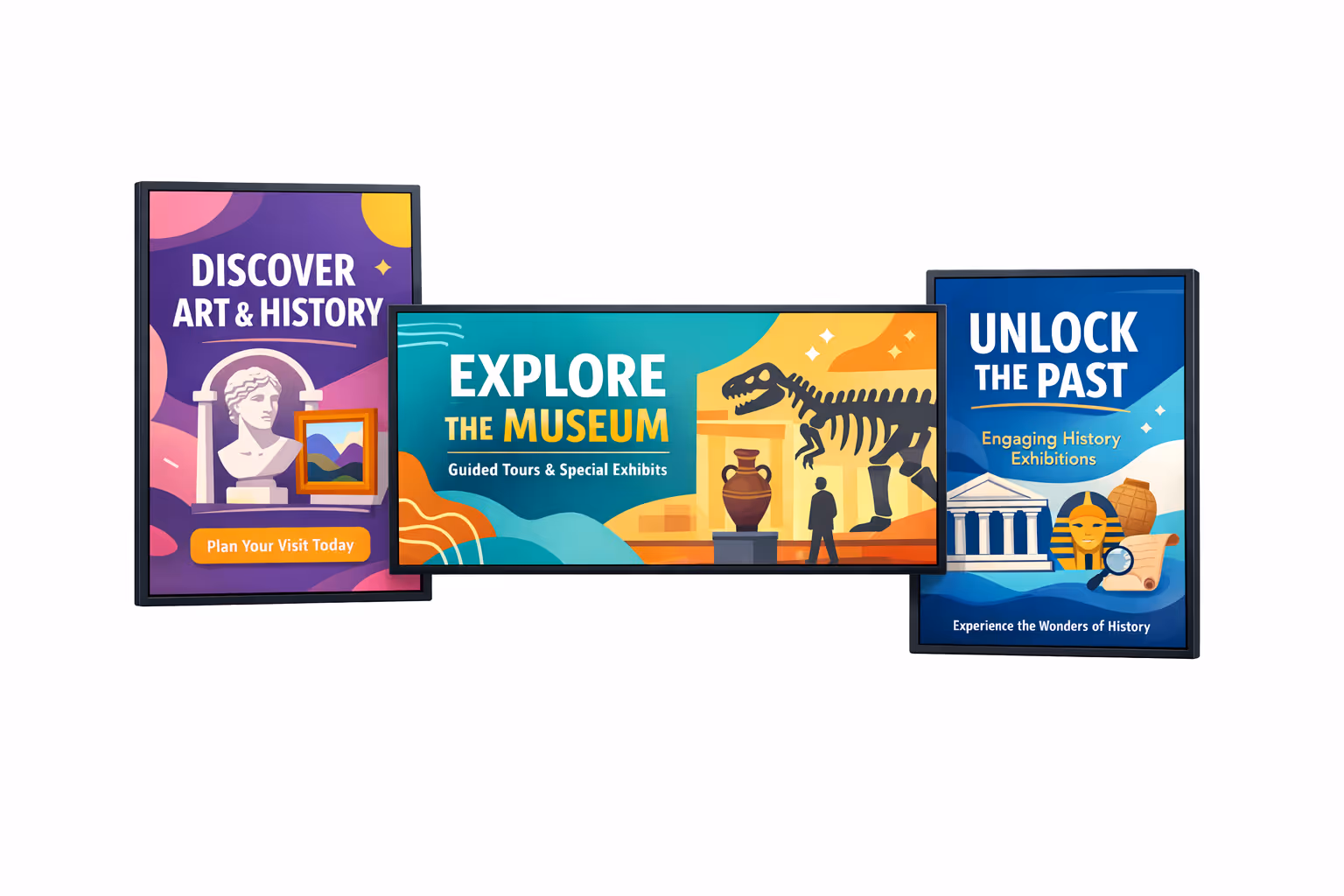 Museums have a distinct voice and a carefully built visual identity. When different departments create signage independently, screens can quickly become inconsistent, which feels messy to visitors and creates extra work for design teams.