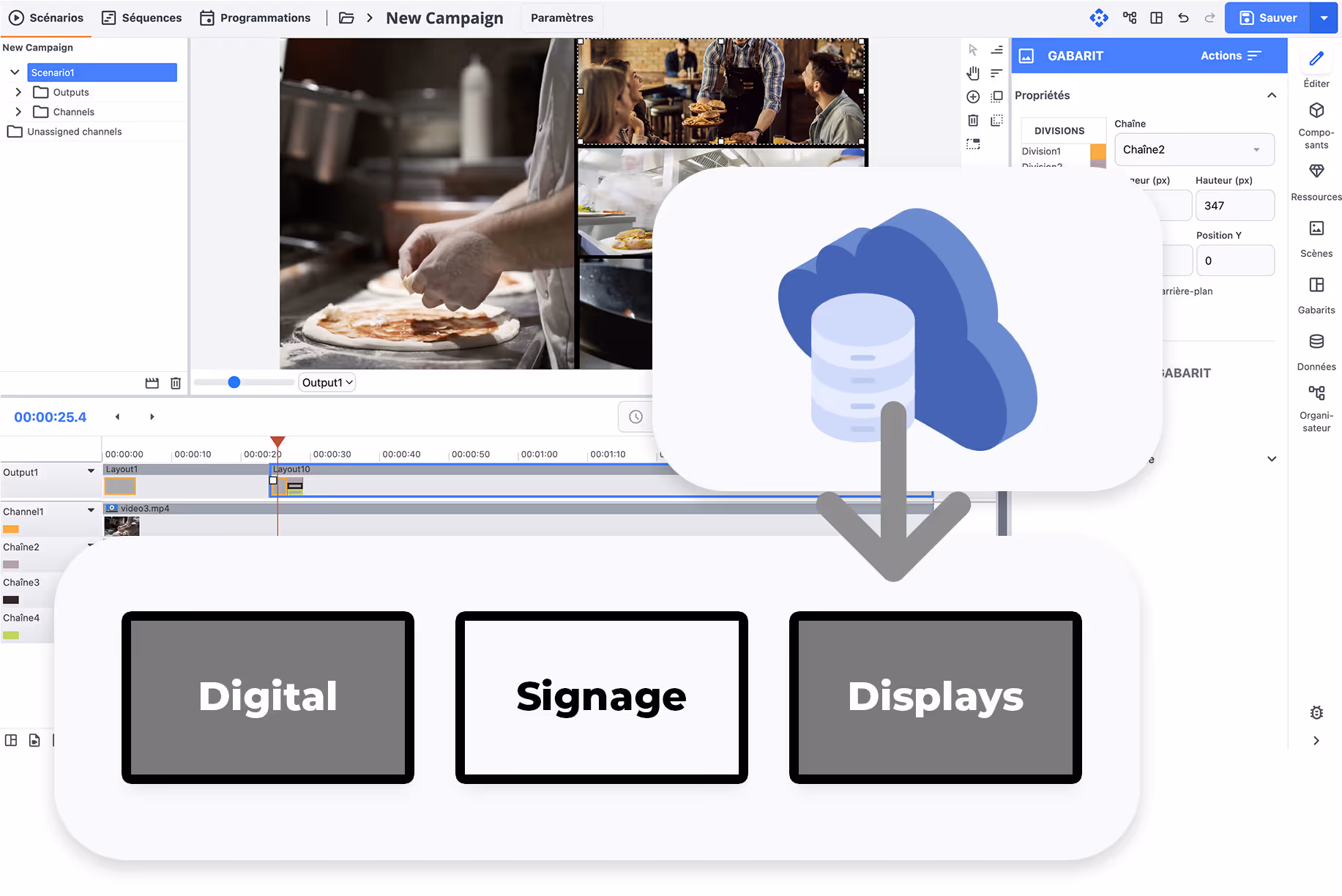 Software de señalización digital basado en la nube, gestión simplificada, actualizaciones en tiempo real, pantallas conectadas, contenido interactivo, sistema SaaS, CMS en la nube, solución escalable, señalización digital de alto rendimiento, gestión multi-sitio, eficiencia digital.