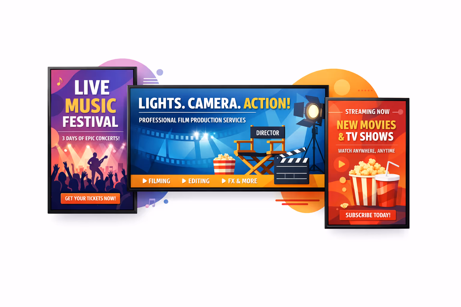 Los casos de uso populares del affichage dynamique de entretenimiento incluyen: