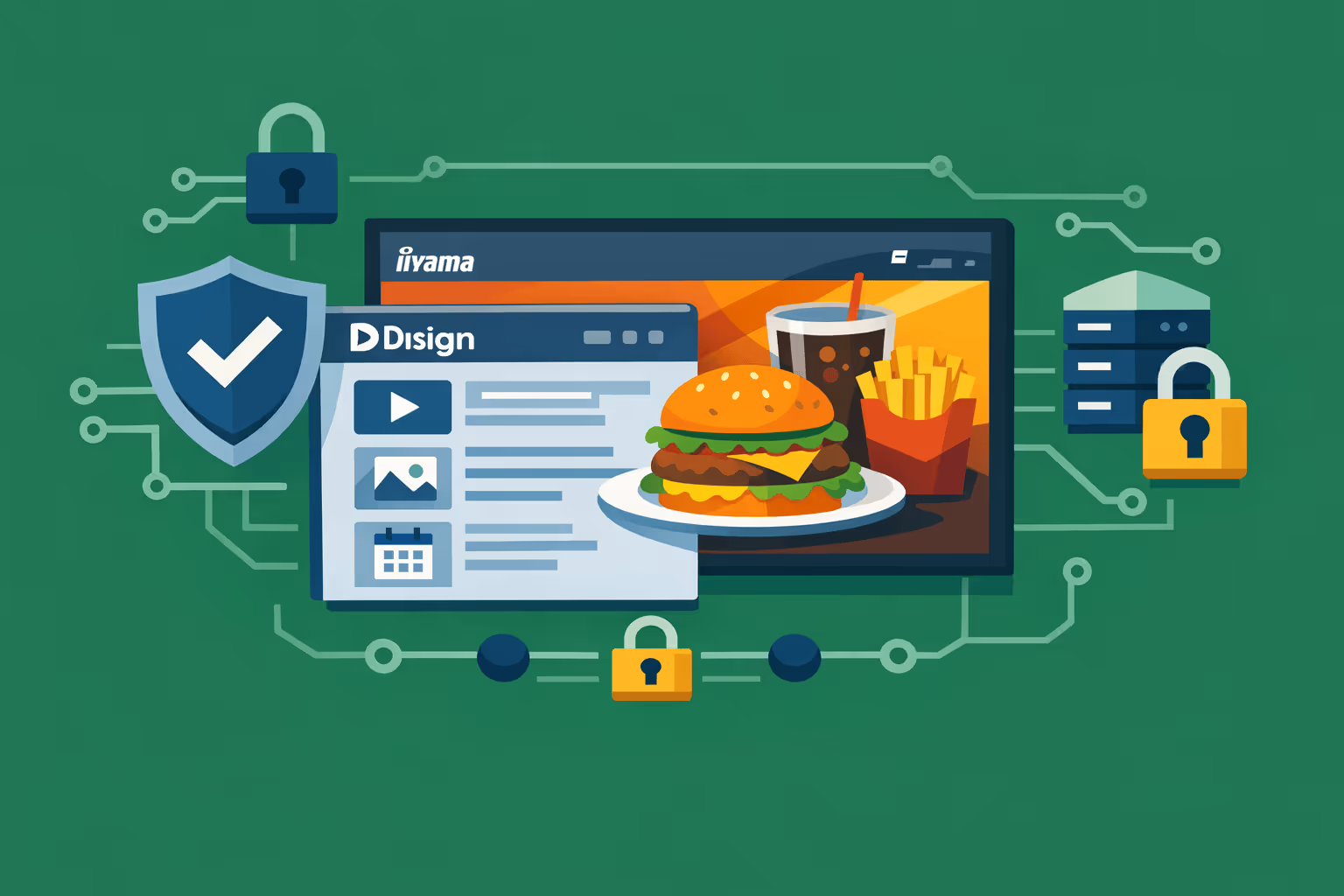 Protege tu red de señalización digital iiyama con comunicación segura y distribución controlada, diseñada para apoyar los requisitos de TI sin añadir complejidad.