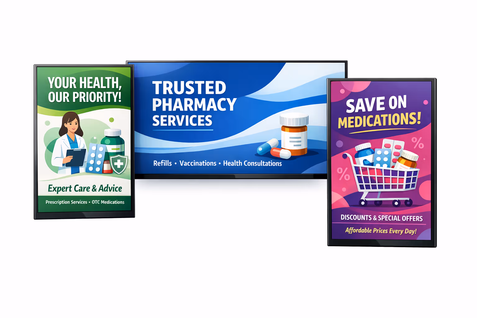 El papel es familiar, pero es lento y difícil de mantener. En las farmacias, los mensajes cambian constantemente: orientación para la temporada de gripe, disponibilidad de vacunas, actualizaciones de seguros, horarios de servicio, restricciones de personal y avisos de seguridad. Los carteles se vuelven obsoletos rápidamente, y el contenido desactualizado puede dañar la confianza.