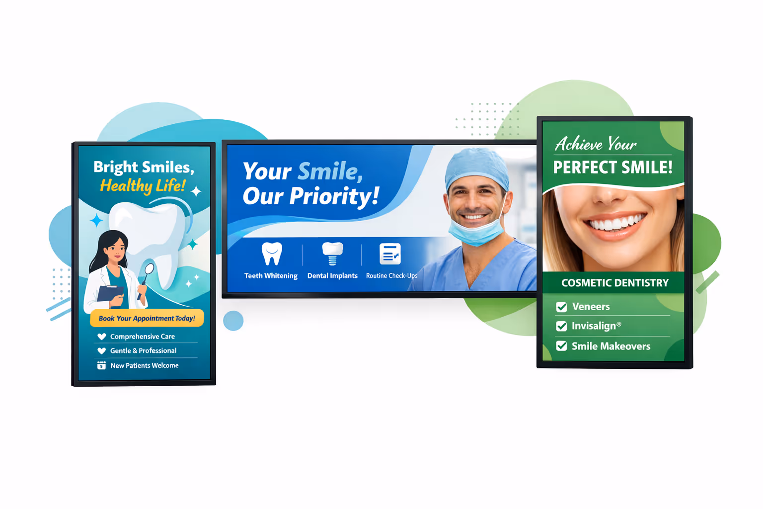 De l'accueil aux couloirs de traitement, l'affichage dynamique dentaire aide les cabinets à communiquer clairement, à réduire les questions répétitives et à renforcer la confiance des patients avec des informations cohérentes et professionnelles.
