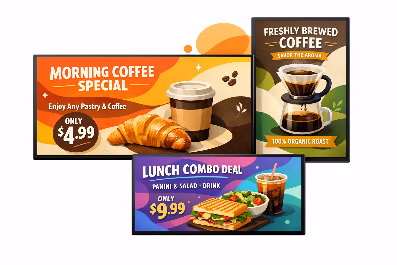 Quando fatto bene, l'affichage dynamique del caffè riduce la confusione, accelera l'ordinazione, evidenzia gli articoli ad alto margine e crea un'atmosfera moderna che i clienti associano alla qualità.