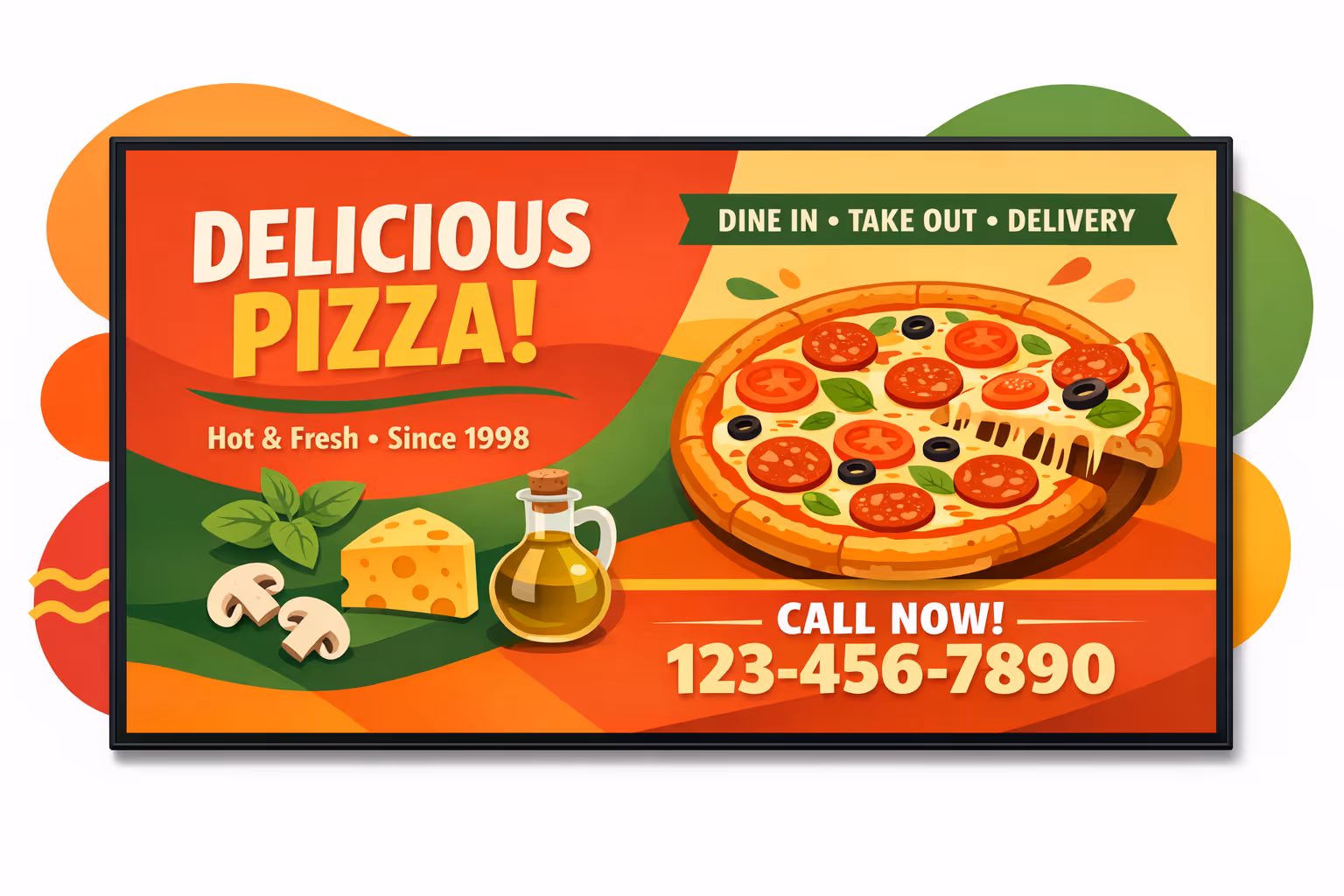 In una pizzeria affollata, i clienti vogliono risposte rapide e chiare nel momento in cui entrano. Quando le informazioni sono difficili da individuare, la confusione si traduce in domande ripetute, code più lente e un inizio stressante sia per i clienti che per il personale.
