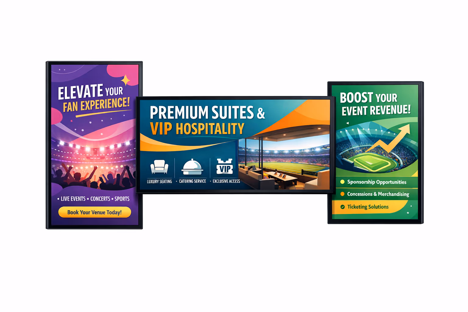 O affichage dynamique em arenas e estádios é o sistema por trás das telas que guia os fãs, promove parceiros, compartilha informações ao vivo e mantém um local funcionando perfeitamente no dia do evento. Inclui menus nos corredores, sinalização, telas de boas-vindas para VIPs, exibições de suítes, informações sobre ingressos e portões, mensagens de segurança, loops de patrocinadores e telas operacionais usadas pela equipe. Para locais modernos, o affichage dynamique não é um item opcional. É um canal de receita e experiência que afeta a satisfação do hóspede, o valor do patrocinador e o desempenho operacional no dia do evento.
