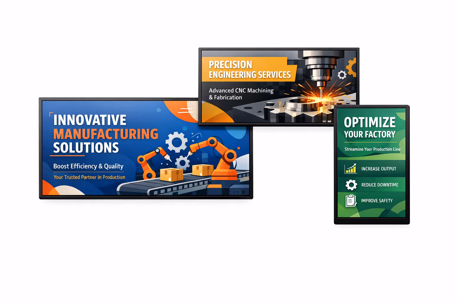 A sinalização digital é uma solução de comunicação visual que utiliza telas digitais (monitores, telas LED, tablets) para exibir conteúdo em tempo real. Na indústria de manufatura, é usada para: