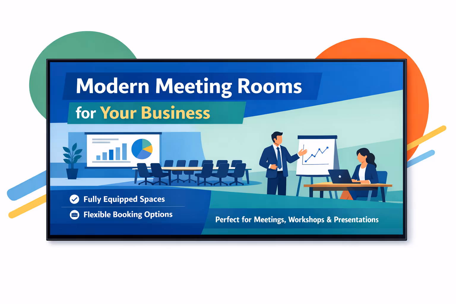 Meeting and conference room digital signage is especially valuable in large offices, multi floor buildings, hybrid workplaces with fluctuating attendance, and shared meeting hubs like training centers and conference suites.